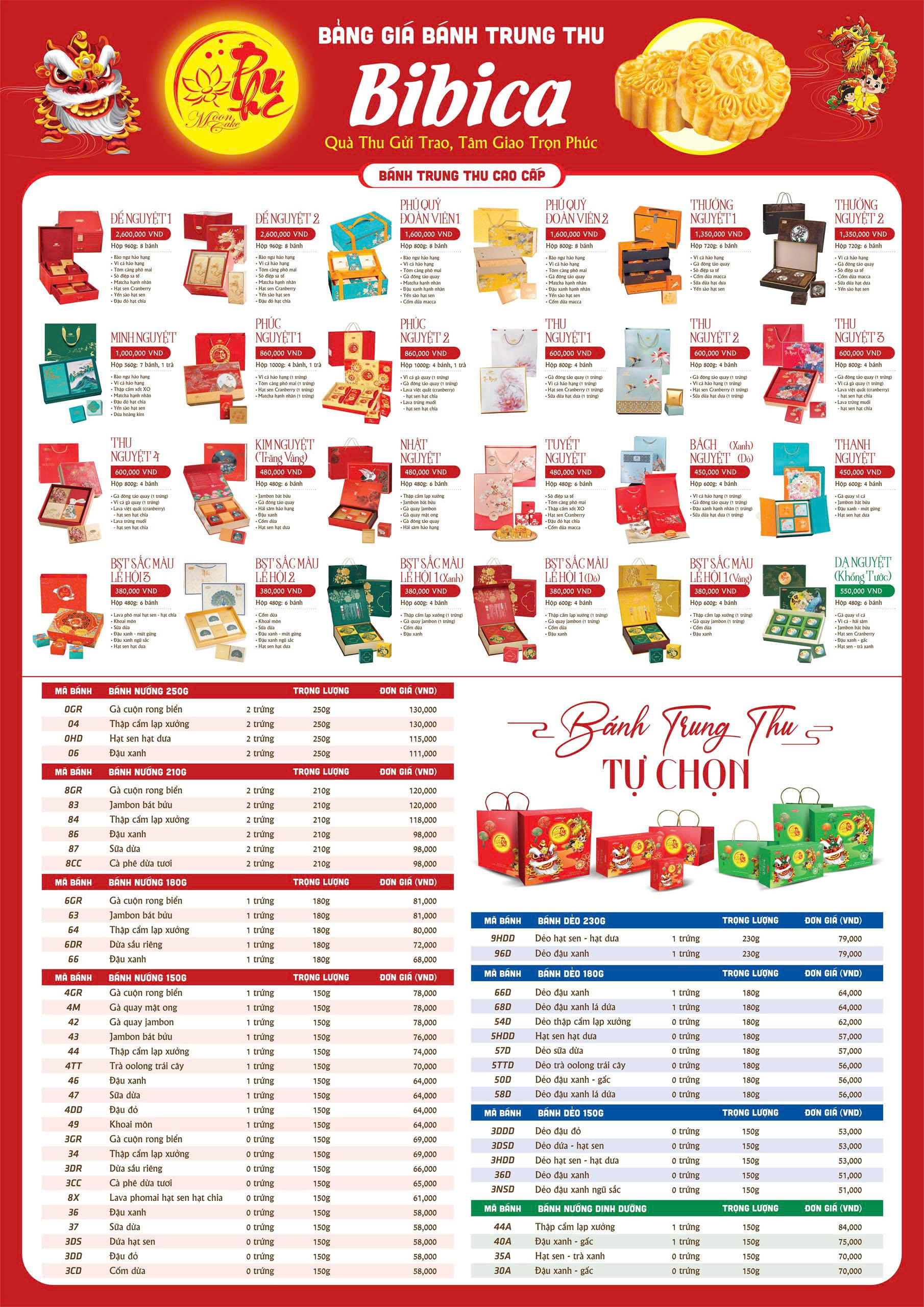 BẢNG GIÁ BÁNH TRUNG THU BIBICA 2025