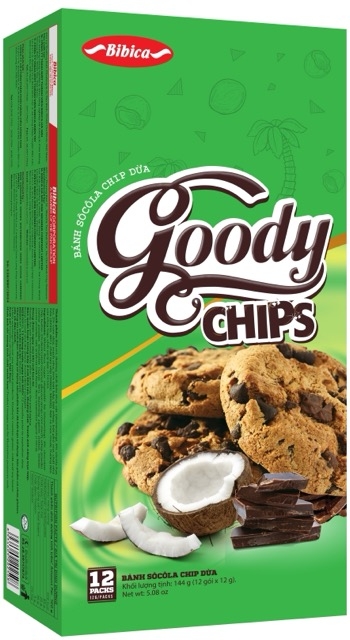 Thành phần: Bột mì, đường, chất béo thực vật (shortening), 8% sôcôla hạt, bơ, 2% cơm dừa, mạch nha, tinh bột bắp, bột whey, bột phô mai, chất nhũ hóa (322(i), 481), chất tạo xốp (500(ii), 503(ii)), bột ca cao, muối, hương liệu sữa tổng hợp, chất xử lý bột (1101(i)).